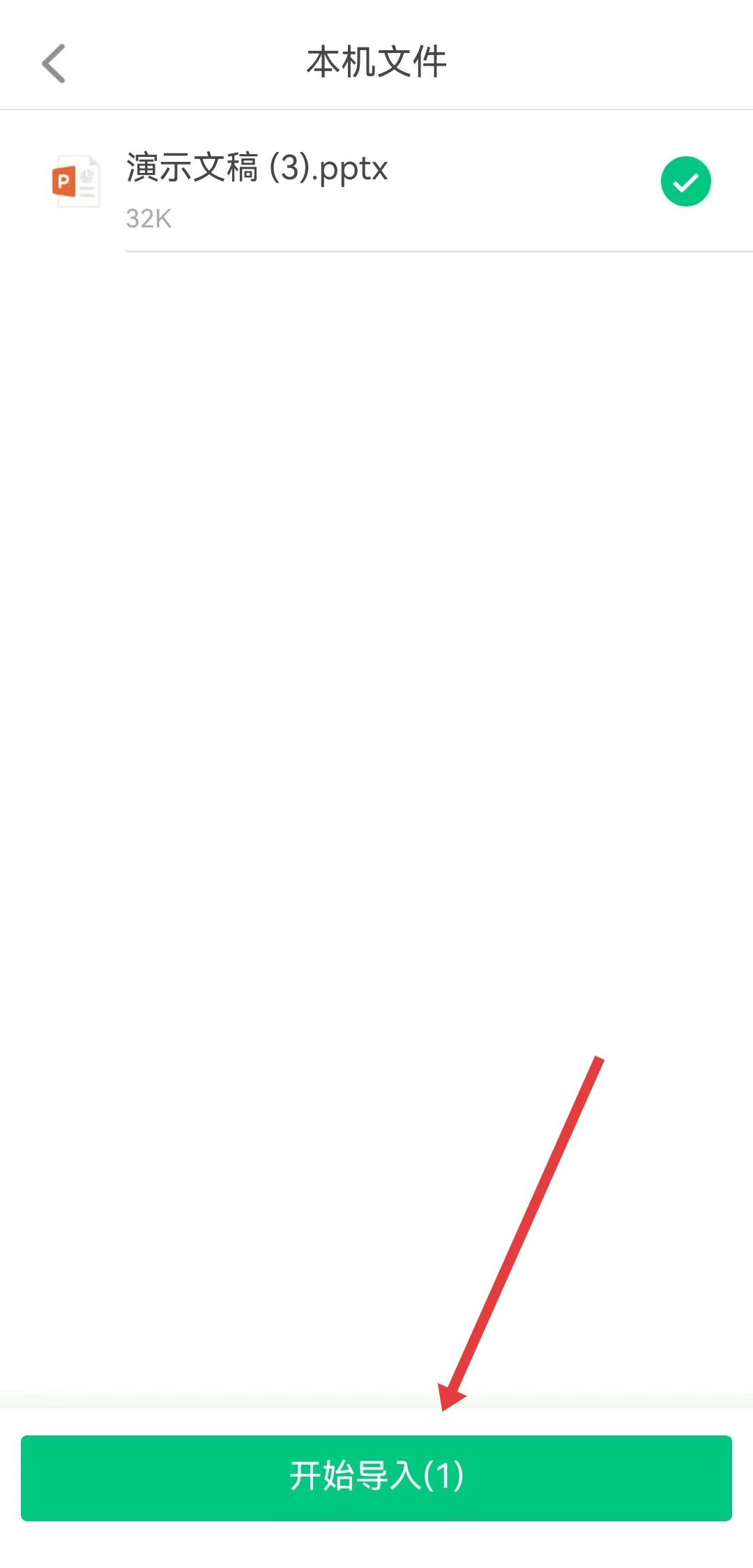 4、在本機文件頁面選擇要導(dǎo)入的PPT文件,然后點擊開始導(dǎo)入按鈕,完成PPT導(dǎo)入。