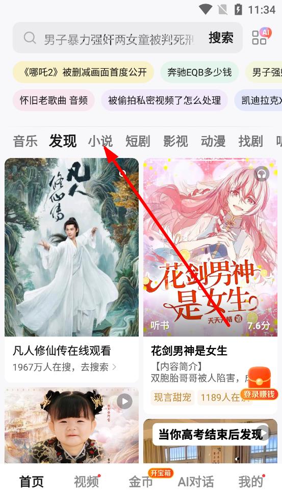 1、打開(kāi)悟空瀏覽器點(diǎn)擊小說(shuō)欄,瀏覽找到心儀小說(shuō)。