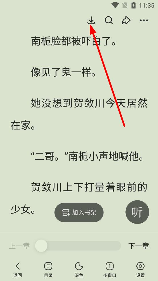 3、在閱讀界面中點(diǎn)擊下載圖標(biāo),即可將小說(shuō)下載到設(shè)備方便離線閱讀。