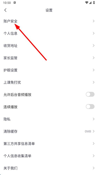 3、在設(shè)置界面,點(diǎn)擊賬戶安全選項(xiàng),進(jìn)入賬戶與安全界面。
