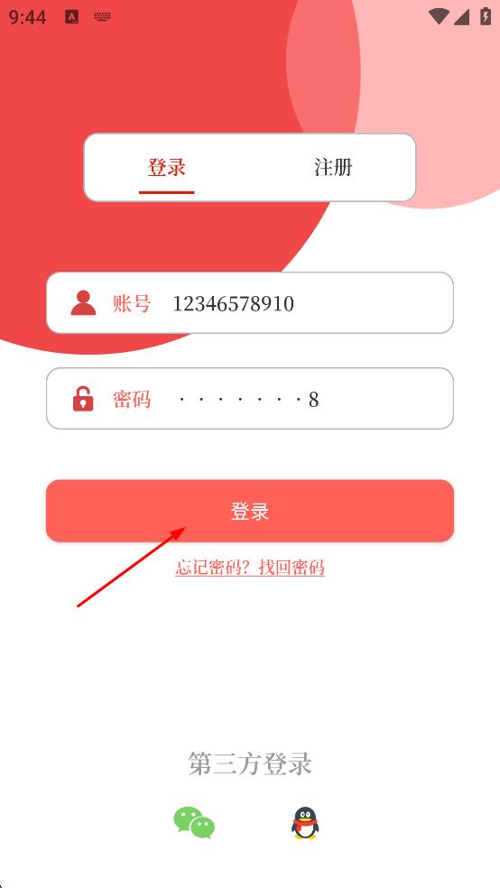 3、在登錄頁面,輸入賬號(hào)(手機(jī)號(hào))和密碼。