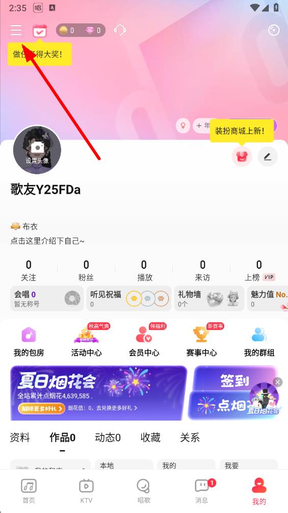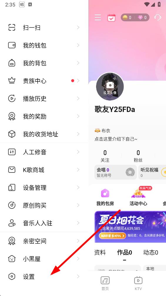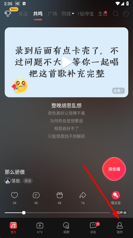 1、打開唱吧app,點(diǎn)擊底部導(dǎo)航欄最右側(cè)我的選項(xiàng)進(jìn)入個(gè)人界面。