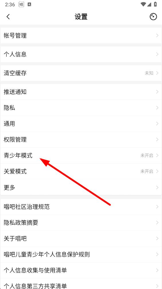4、在設(shè)置頁面中,找到并點(diǎn)擊青少年模式選項(xiàng)。
