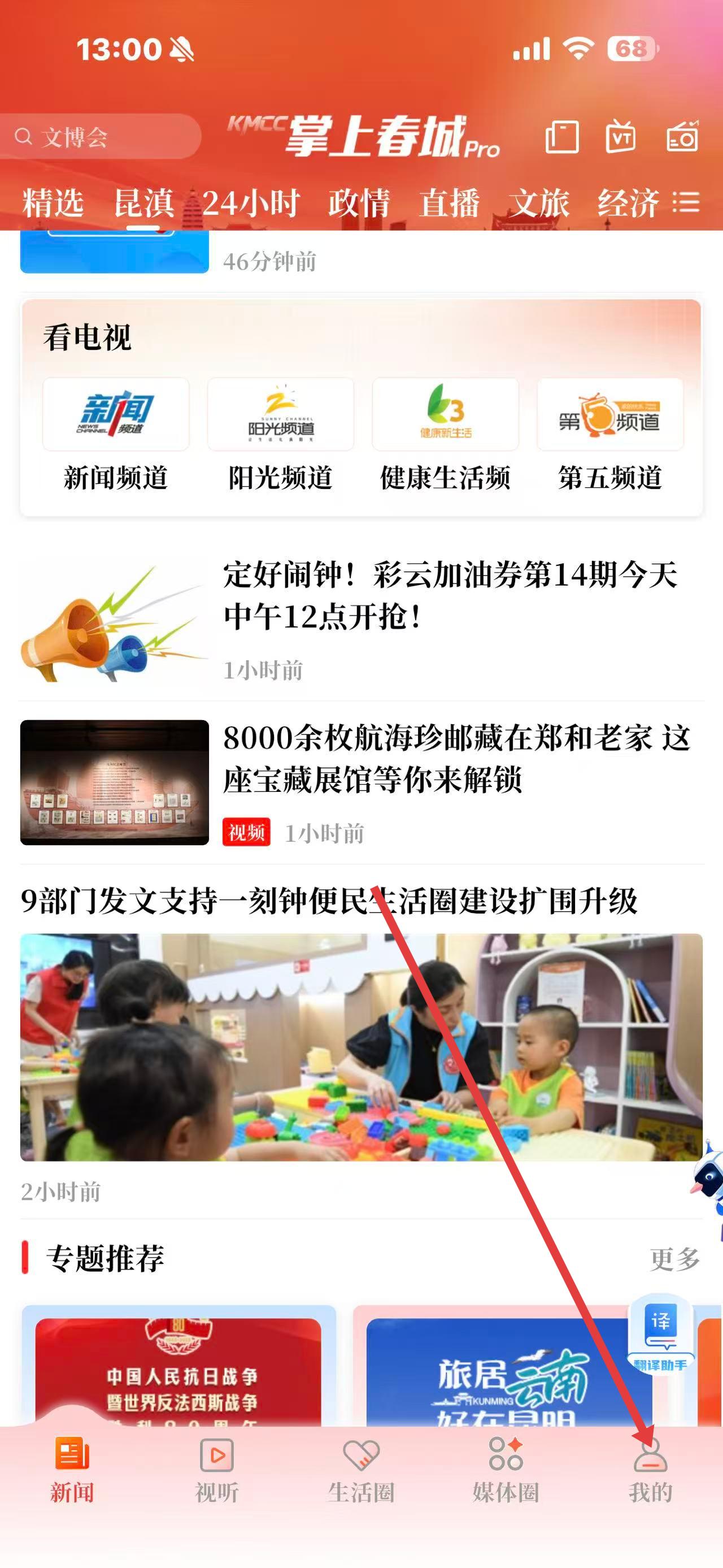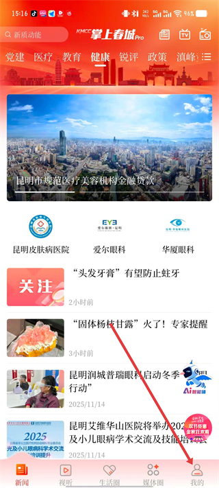 1、打開掌上春城app,點(diǎn)擊底部導(dǎo)航欄最右側(cè)的我的選項(xiàng),進(jìn)入個(gè)人頁面。