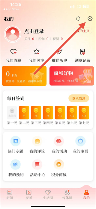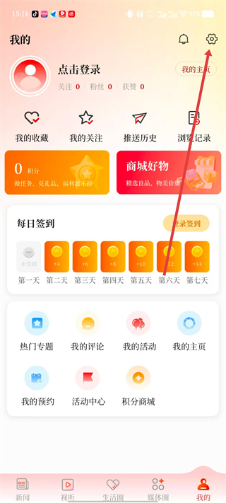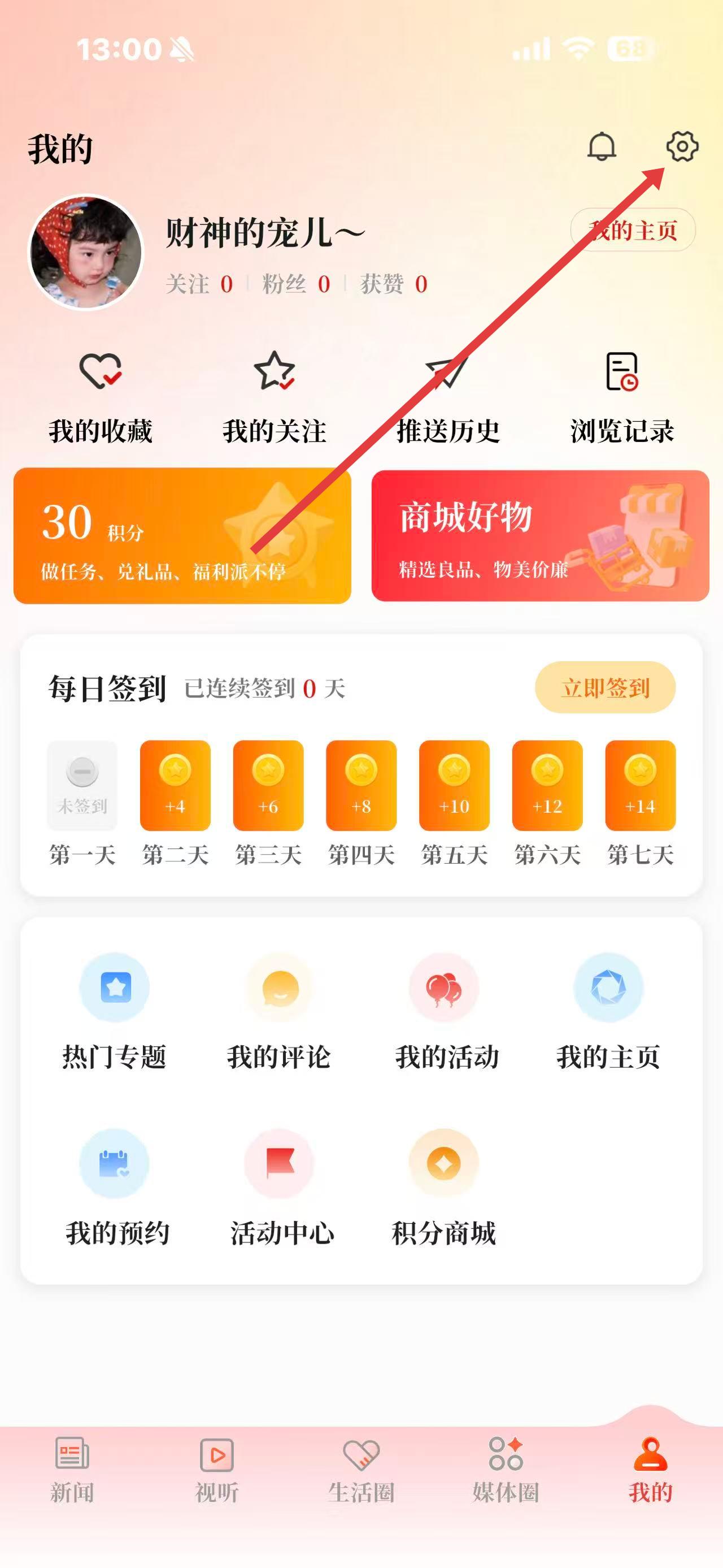 2、在我的頁面,點(diǎn)擊右上角的設(shè)置圖標(biāo),進(jìn)入設(shè)置界面。