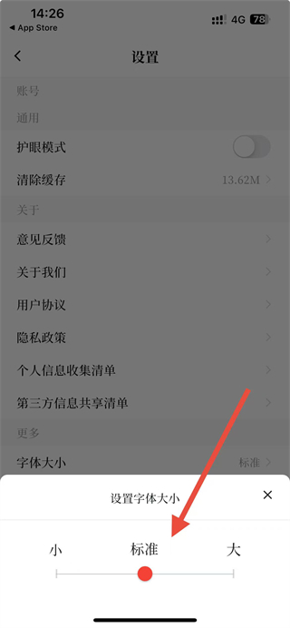 4、拖動(dòng)滑塊選擇小、標(biāo)準(zhǔn)或大字號(hào),即可完成字體大小修改操作。