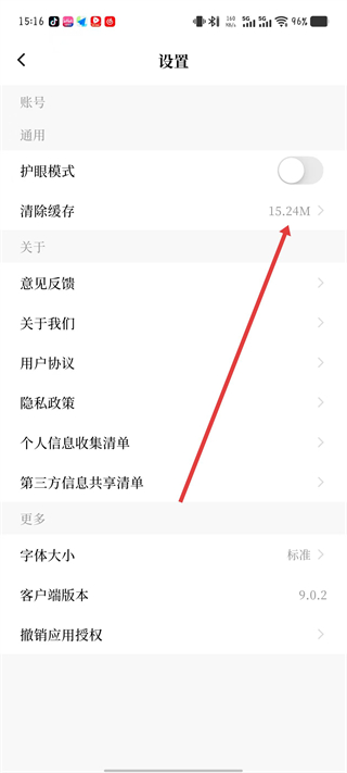 3、在設(shè)置頁面點(diǎn)擊清除緩存選項(xiàng),彈出清除緩存確認(rèn)框。