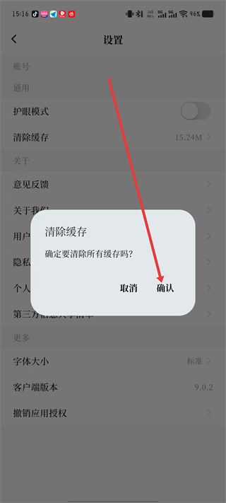 4、在清除緩存確認(rèn)框中點(diǎn)擊確認(rèn)按鈕,即可完成緩存清理。