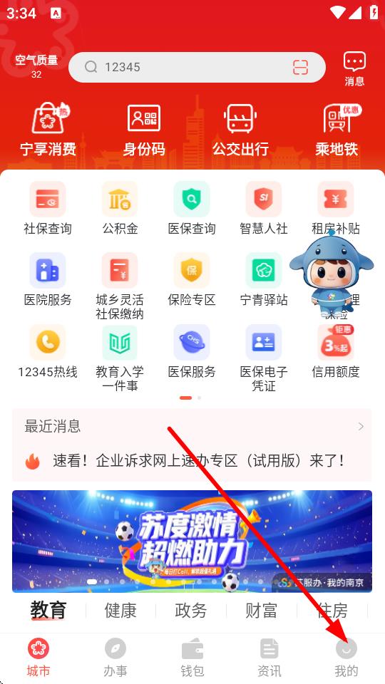1、打開我的南京app,點(diǎn)擊底部導(dǎo)航欄最右側(cè)的我的選項(xiàng)。