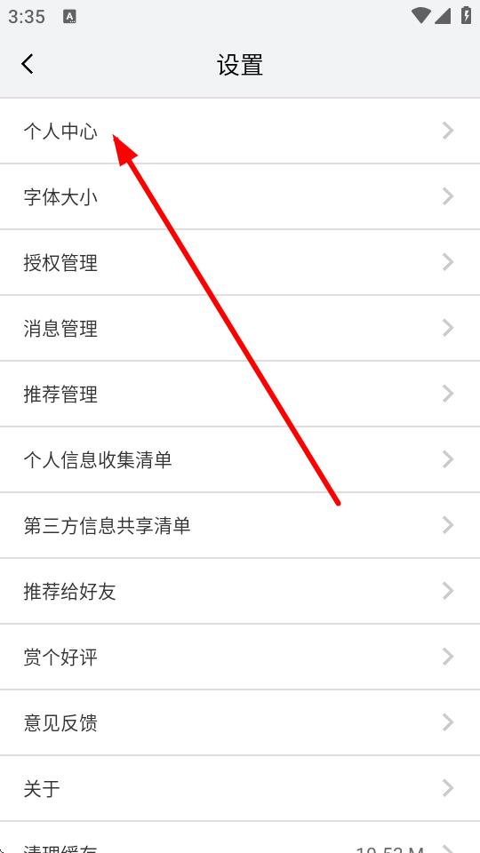 3、進(jìn)入設(shè)置頁面后,點(diǎn)擊個(gè)人中心選項(xiàng)。