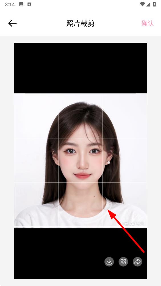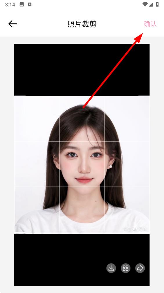 4、調(diào)整好裁剪范圍后,點擊界面右上角的確認(rèn)按鈕,完成照片尺寸的修改。