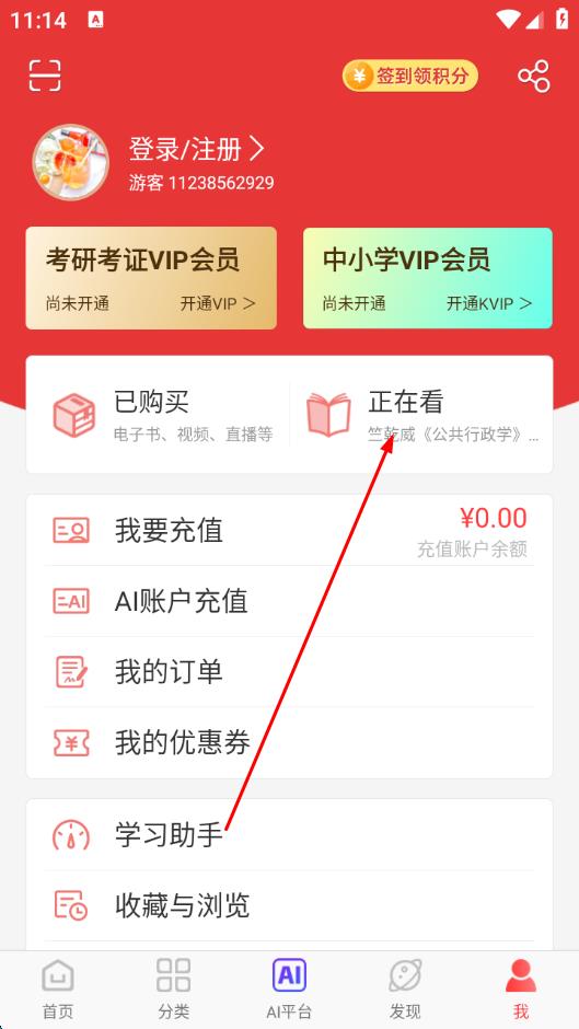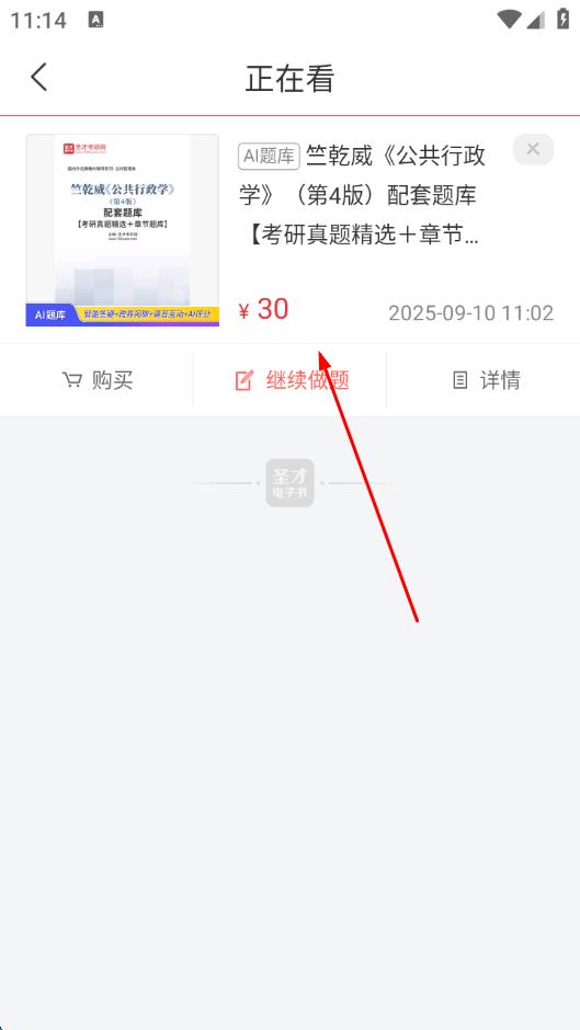 3、在正在看頁面,能看到最近查看或做題的記錄,點(diǎn)擊繼續(xù)做題。
