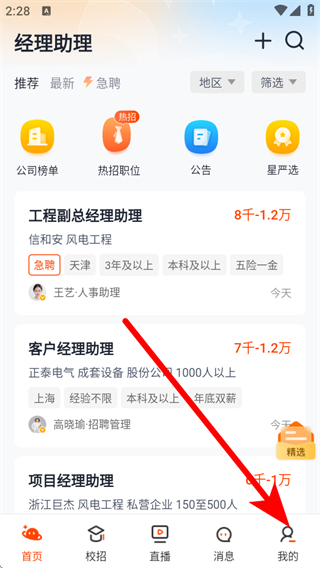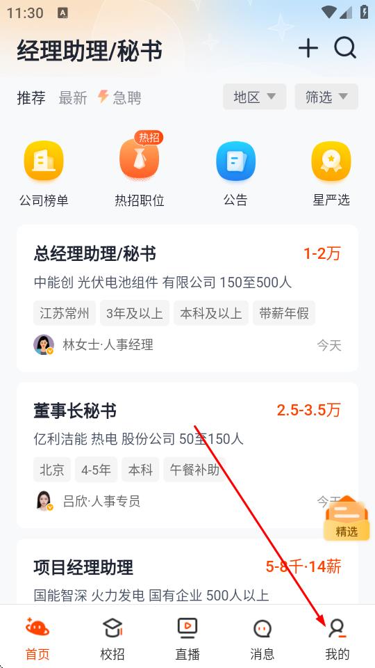 1、打開北極星招聘APP,點擊底部導航欄中的我的。