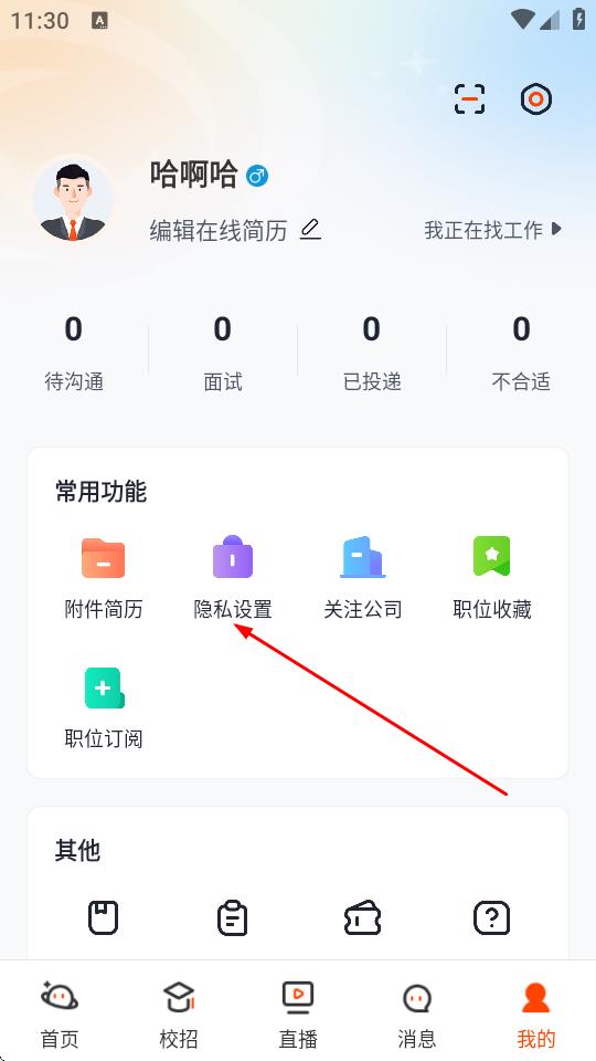 1、打開北極星招聘APP,點擊右下角我的,進入個人頁面。