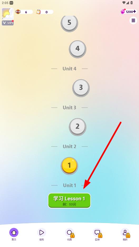 1、打開傻瓜英語app,在課程界面點(diǎn)擊學(xué)習(xí)Lesson1按鈕開始學(xué)習(xí)。