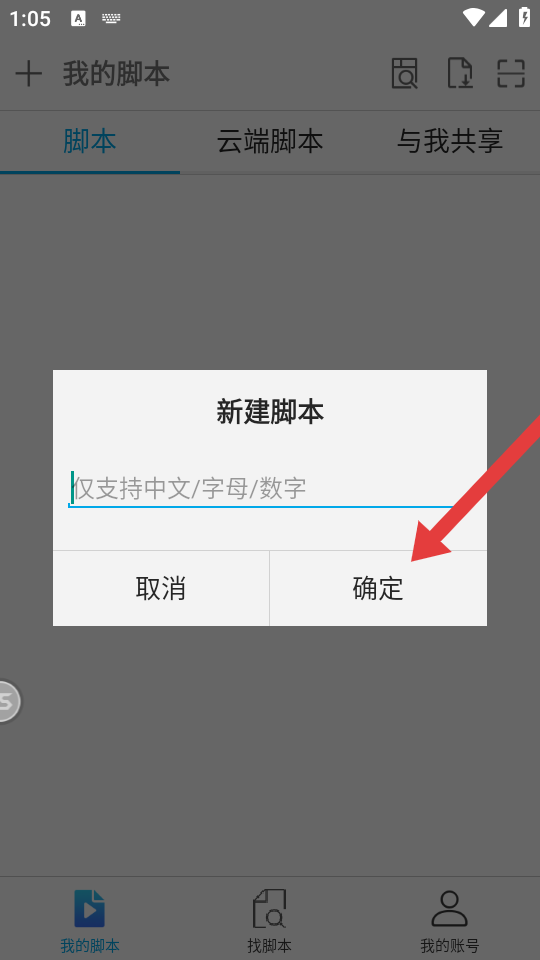 3、在新建腳本輸入框中,輸入腳本名稱,然后點(diǎn)擊確定的按鈕。