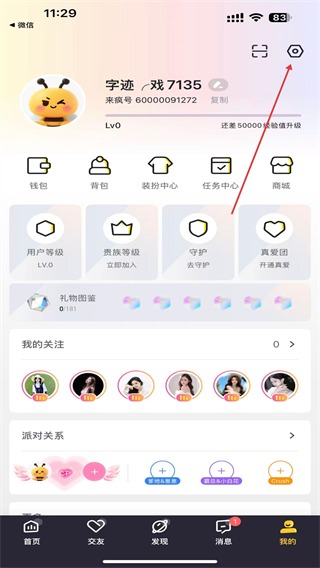 2、進(jìn)入我的頁面內(nèi),點(diǎn)擊右上設(shè)置的功能按鈕。