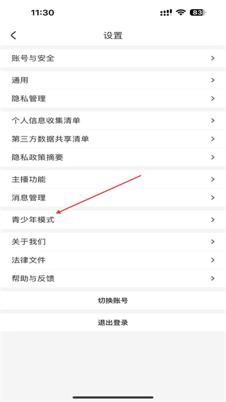 3、進(jìn)入設(shè)置的頁面內(nèi),點(diǎn)擊青少年模式的按鈕。