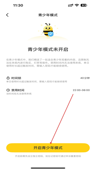 4、熟知模式后,點(diǎn)擊下方開啟青少年模式即可。