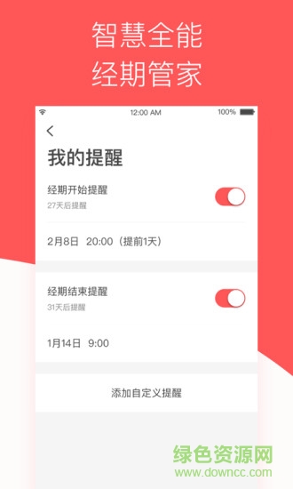【貼心提醒】您可以根據(jù)自己的需求設置經(jīng)期開始前和經(jīng)期結束時的提醒及其他自定義提醒