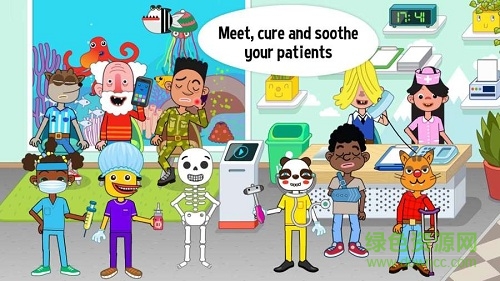 佩皮醫(yī)院有各種各樣的人物。幾十個(gè)可愛、快樂和獨(dú)特的人類、寵物、怪物和外星人來到那里玩,加入你對醫(yī)院建筑的嬉戲探索。