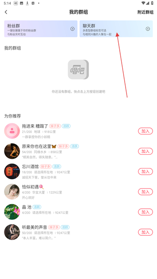4、進入我的群組的界面內(nèi),用戶需點擊聊天群。