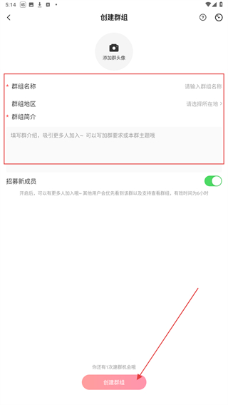 5、在創(chuàng)建群組下,輸入信息后再點擊創(chuàng)建群組即可。