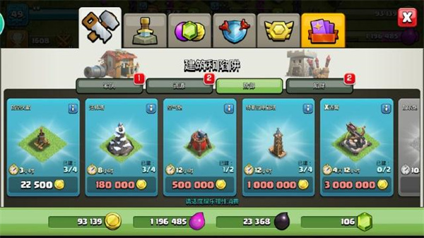 1、建筑順序:實驗室、法術(shù)工廠、黑暗訓練營、兵營、訓練營、黑暗藥水法術(shù)工廠、電塔、防空火箭、法師塔、迫擊炮、箭塔、加農(nóng)炮,資源類、城墻最后升級;