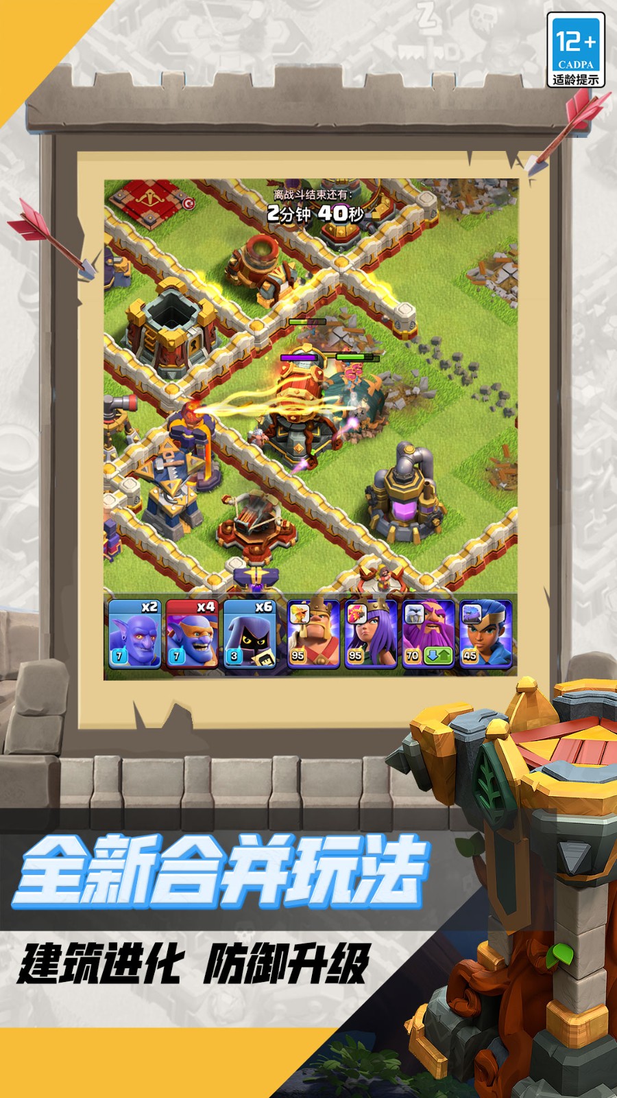 ●使用全新兵種進行戰(zhàn)斗,包括狂暴野蠻人、隱秘弓箭手、巨人拳擊手、炸彈兵、加農(nóng)炮戰(zhàn)車以及新英雄——戰(zhàn)爭機器。
