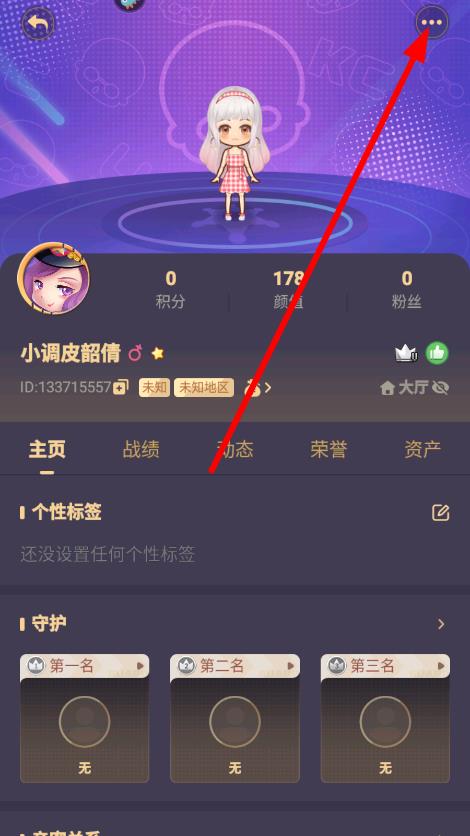 2、在個人信息頁面,點(diǎn)擊右上角三個點(diǎn)圖標(biāo),彈出操作菜單。