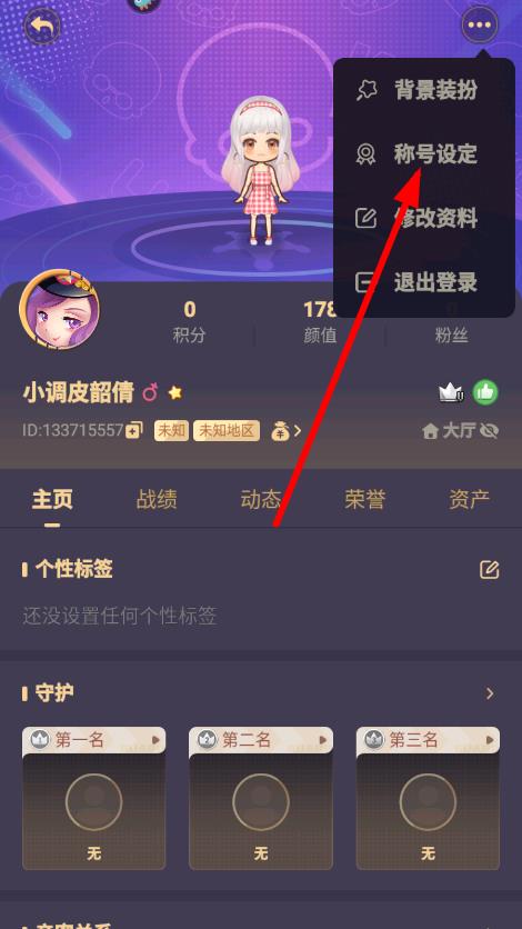 3、在彈出菜單中,點(diǎn)擊稱號設(shè)定選項,進(jìn)入稱號選擇界面。