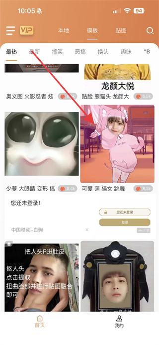 2、在模板頁(yè)面,選擇喜歡的模板類型,如最新、搞笑、換頭等,挑選心儀的模板。