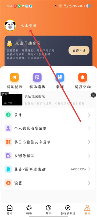 1、打開暴走P圖應(yīng)用,點(diǎn)擊頁(yè)面底部我的選項(xiàng)。