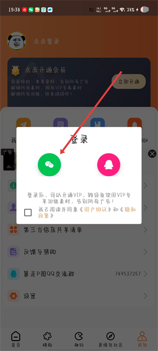 3、在彈出的登錄方式選擇界面中,點(diǎn)擊微信圖標(biāo)。