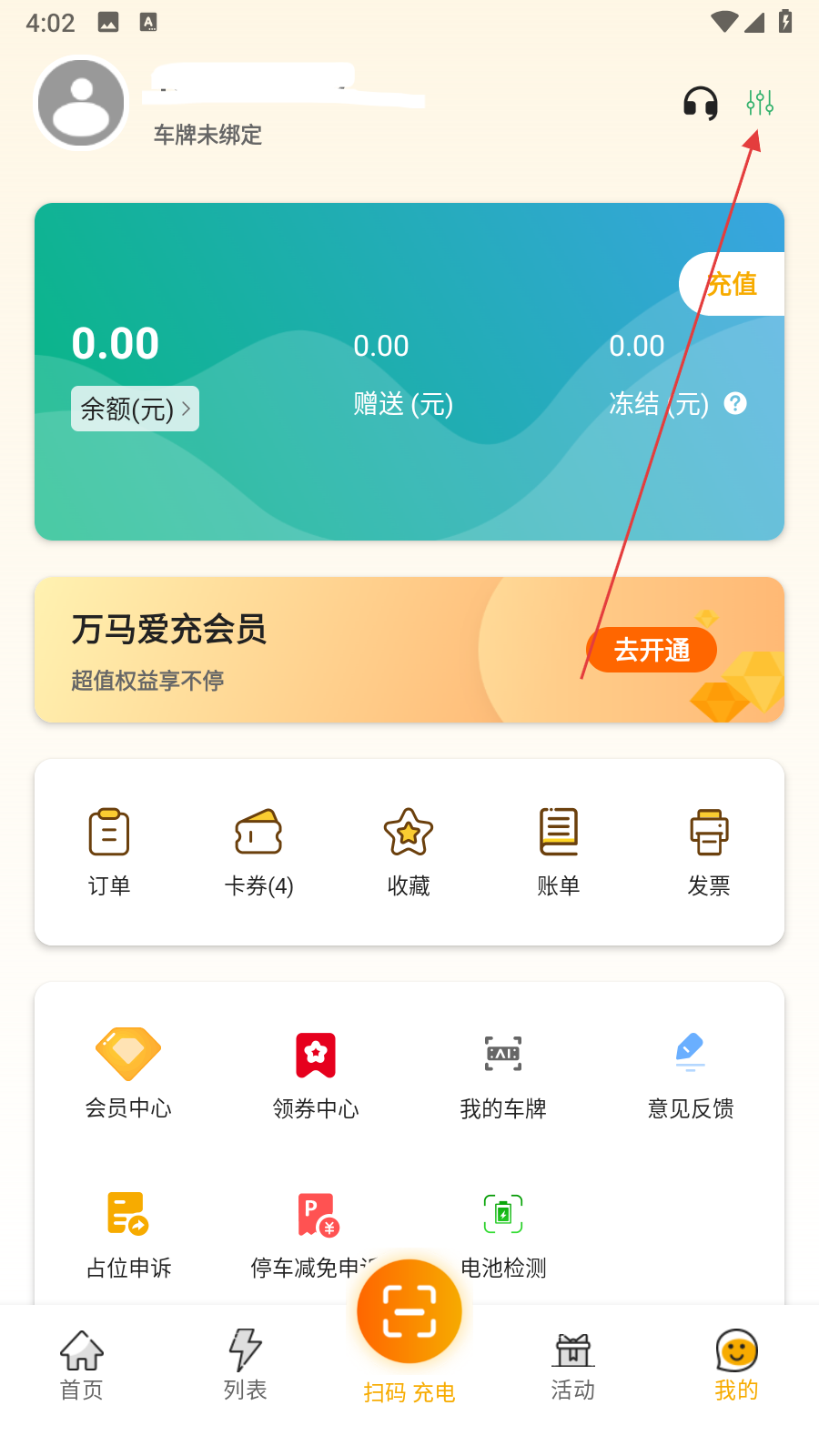1、打開萬馬愛充APP,點(diǎn)擊頁面底部我的,進(jìn)入個(gè)人頁面。