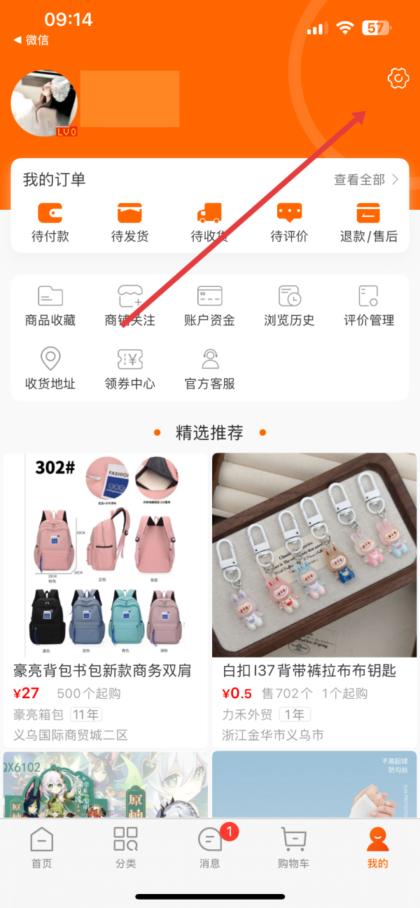 1、進入APP點擊底部導航欄中我的界面,點擊界面右上角設置圖標進入設置頁面。
