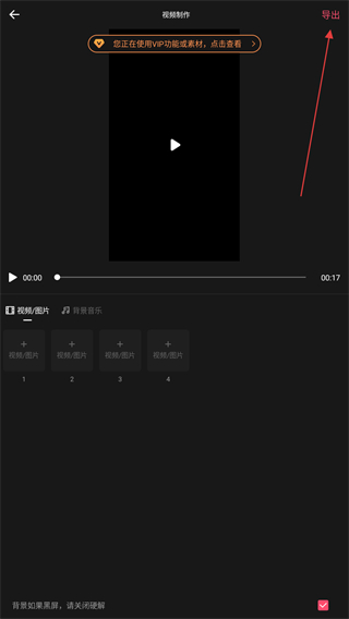 3、進(jìn)入視頻制作的界面內(nèi),制作后點(diǎn)擊右上角導(dǎo)出的按鈕。