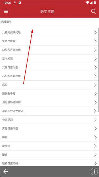 2、進入醫(yī)學主題頁面后,選擇相關(guān)章節(jié)。