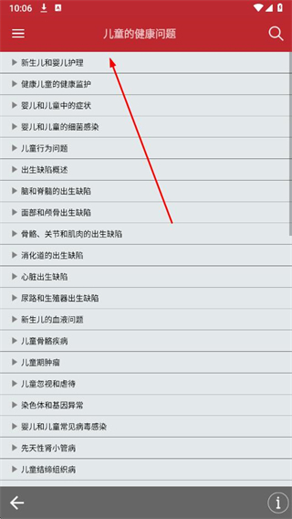 3、在兒童的健康問題頁面中,選擇具體的子類別。