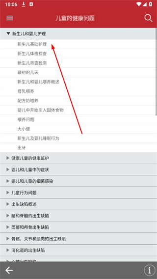 4、點擊展開新生兒和嬰兒護理,選擇想要收藏的具體內(nèi)容。