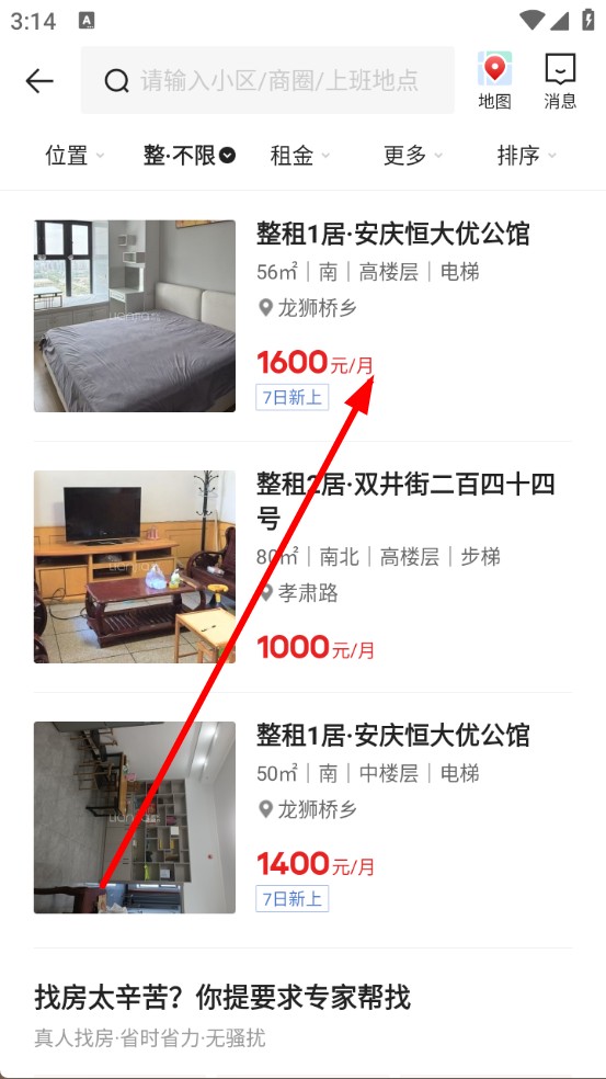 3、瀏覽篩選后的房源列表,點擊感興趣的房源進入詳情頁。