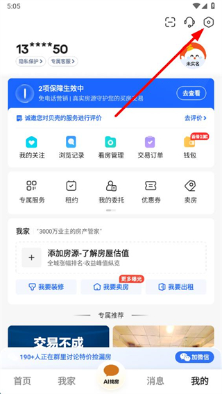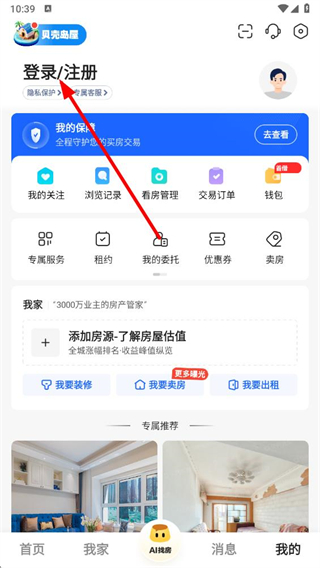 1、在貝殼找房app首頁點擊我的選項,進入個人頁面。
