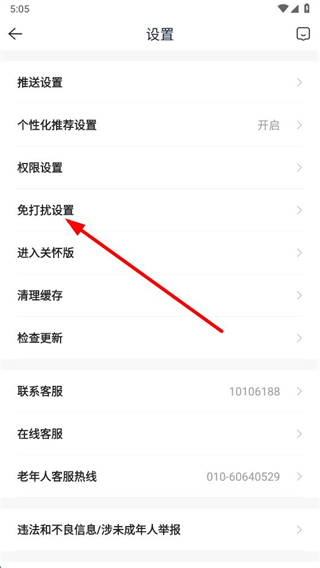 3、在設置頁面點擊免打擾設置選項,進入免打擾設置頁面。