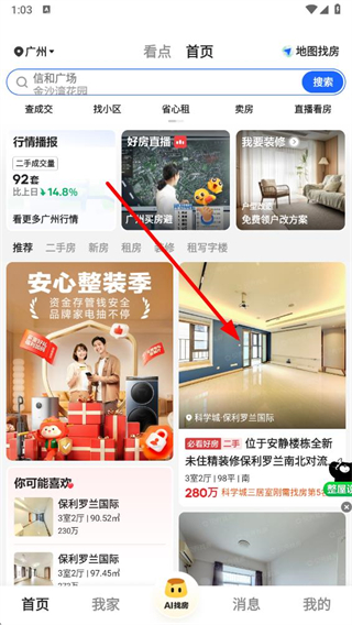 1、在貝殼找房app首頁選擇目標房源并點擊進入房源詳情頁。