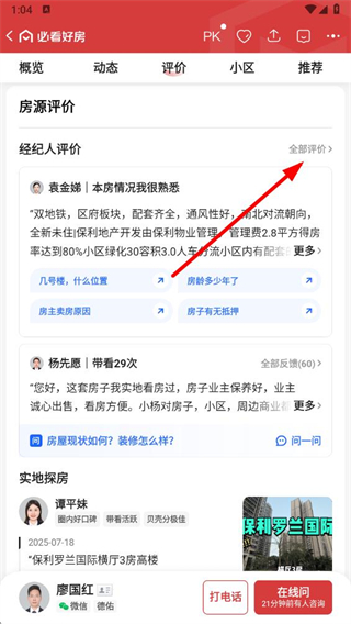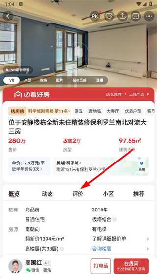 2、在房源詳情頁點擊評價選項,進入評價頁面。
