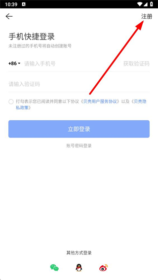 3、在登錄界面,點擊右上角的注冊選項,進入注冊賬號頁面。