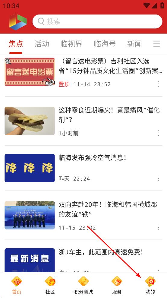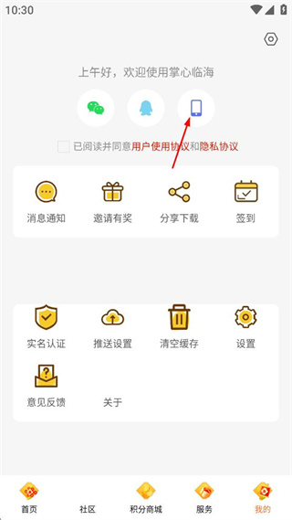 1、在掌心臨海首頁點擊右下角我的,進入個人中心界面。