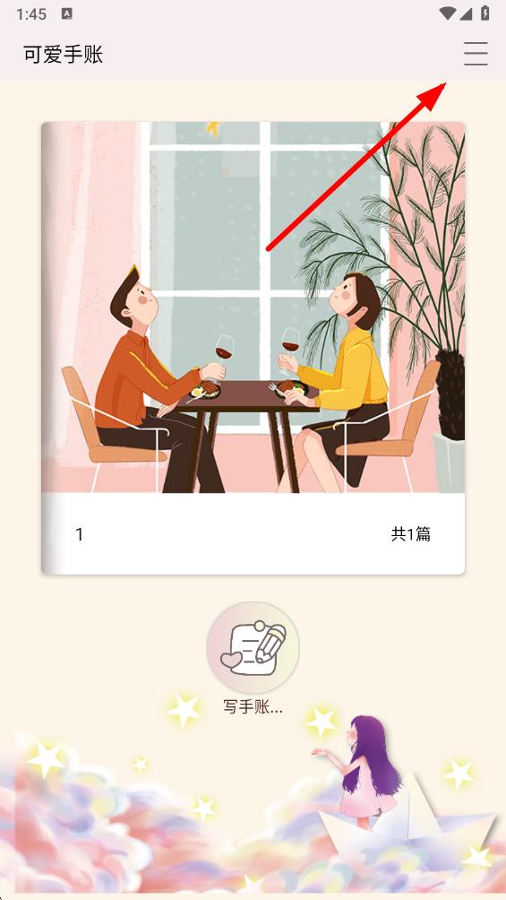 1、打開可愛手賬app,點(diǎn)擊主界面右上角的菜單圖標(biāo)。