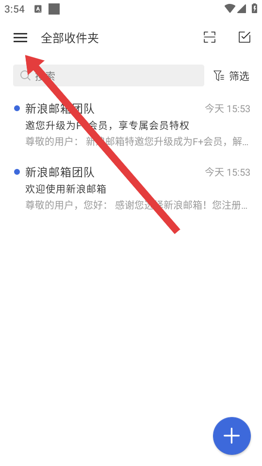 1、在新浪郵箱首頁,點擊左上角三條橫線的菜單按鈕,展開側(cè)邊欄。