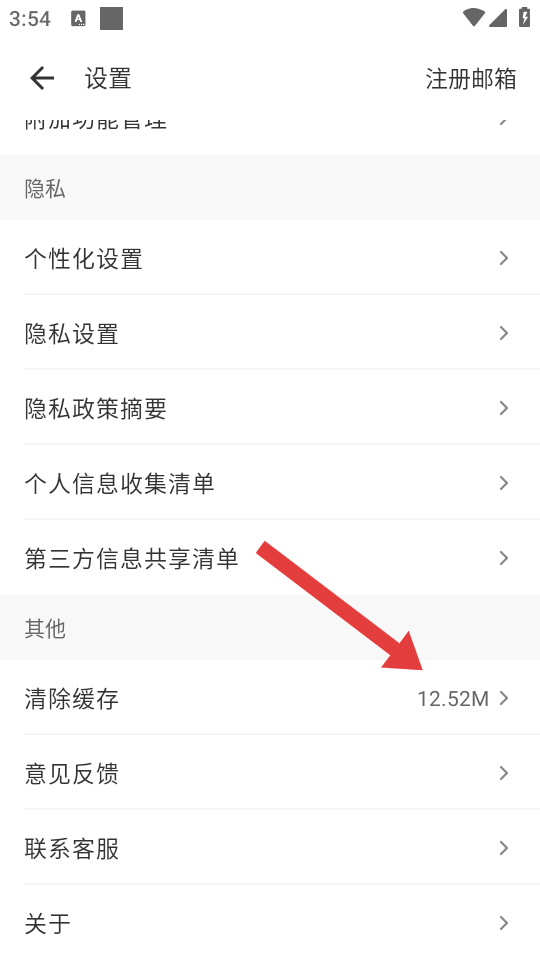 3、在設(shè)置頁面中,找到清除緩存選項,點擊進入緩存清理確認界面。